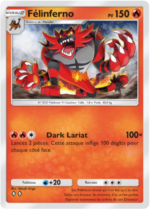 Un deck basé uniquement sur Félinferno-ex, mais avec l’ajout d’un Félinferno non-ex pour contrer Plumeline.