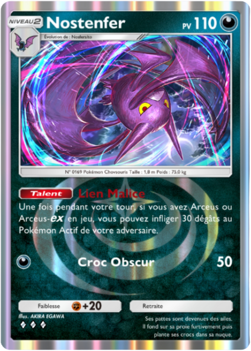 Dans cet article, nous expliquons en détail la composition du deck “Deck Nostenfer et Arceus-ex(Uniquement de l’Énergie Obscurité Variante Nymphali-ex)”, l’intention de construction, les bases du gameplay et le rôle des cartes clés.