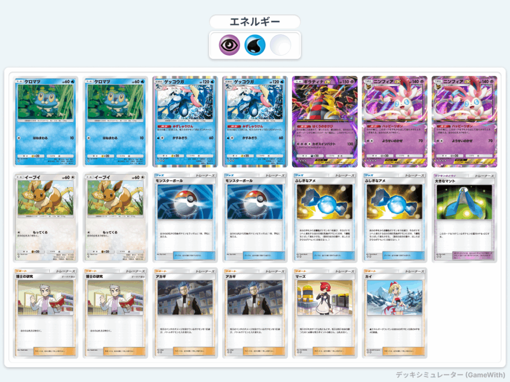 この記事では、「ニンフィアex&ゲッコウガ(ギラティナex1枚採用型)デッキ」のデッキレシピや構築意図、立ち回りの基本、注目カードの役割について詳しく解説します。