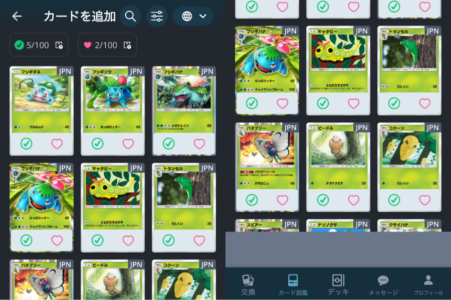 欲しいポケモンカードと自分の余っているカードでアプリ内でマッチングさせてポケポケでフレンドになりポケモンカードをトレードするアプリケーションのことです。