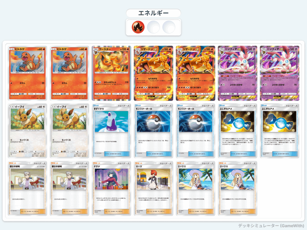 ニンフィアexをデッキに入れることでリザードンexの完成度を高めたデッキ。