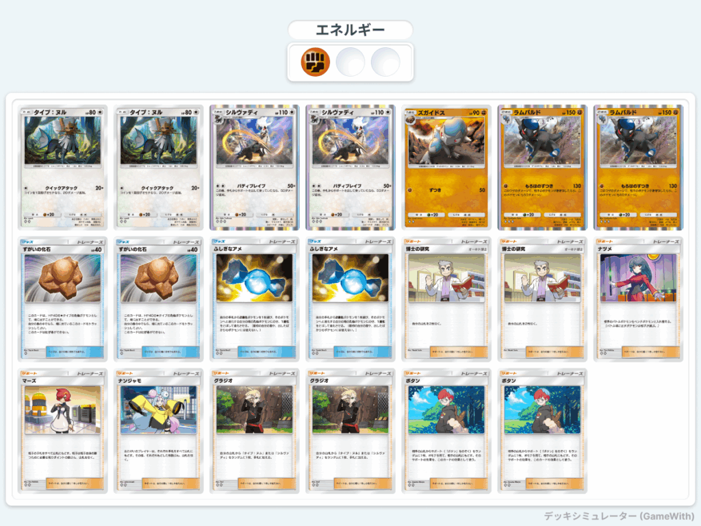 ボタンを入れることでワンチャン博士の研究を狙うデッキ。ラムパルドの完成率が上がる。